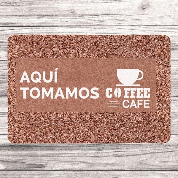 Tapete de Entrada Tomemos Café ideal para dar una bienvedida a aqullos amantes del cafe y qye quieren compartir su pecado culpable con sus invitados, en definitiva lo pueden usar en hogares y comercios.
